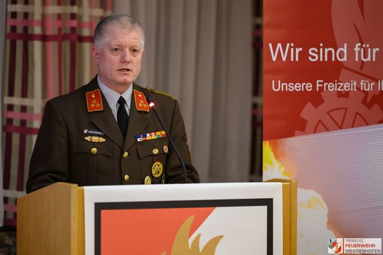 Kommandant Reinhard Voithofer begrüßte nicht nur Ehrengäste sondern auch eine stattliche Anzahl an Mitgliedern.