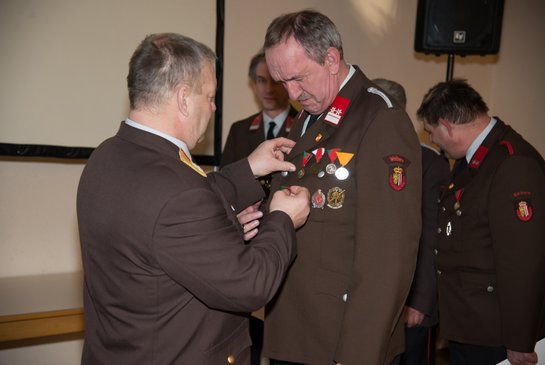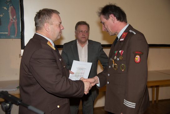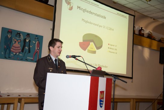 Er konnte zahlreiche Ehrengäste wie Bezirks-Feuerwehrkommandant OBR Josef Murauer, Abschnitts-Feuerwehrkommandant BR Franz Oberndorfer und Feuerwehrkurat Mag. Johannes Blaschek sowie Viezebürgermeister Walter Marböck und die Ehrendienstgradträger der Feuerwehr Weibern, angeführt von E-OBR Rudolf Harra und E-HBI Hubert Hamedinger in der Runde begrüßen. In den Referaten der Kommandomitglieder und des Kommandanten wurde das Jahr 2014 noch einmal durchleuchtet. Von den 136 Mitgliedern (103 Aktiv, 16 Reserve und 17 Jugend) wurden 37 Einsätze (5 Brand, 32 Technische) erfolgreich bewältigt. Für die Ausbildung der Aktiven wurden in 109 Veranstaltungen 3721 Stunden aufgewendet, für die Jugendarbeit wurden 2412 Stunden aufgebracht. Insgesamt wurden im Jahr 2014 von den Kameraden der Feuerwehr Weibern stolze 13875 Stunden für das Ehrenamt geleistet. Es wurden im vergangenen Jahr gewaltige 76 Leistungsabzeichen - davon 26 von der Jugend - erkämpft. 42 Lehrgänge konnten an der Landes-Feuerwehrschule und auf Bezirks- und Abschnittsebene bzw. in der Feuerwehr absolviert werden. Auch zahlreiche Auszeichnungen gab es zu vergeben. Martin Reichenwallner wurde mit der 40-jährigen Feuerwehrdienstmedaille geehrt. Friedrich Krempl und Rudolf Rabengruber konnten die Verdienstmedaille des Bezirkes Stufe 3 und Ludwig Schönleitner die Verdienstmedaille des Bezirkes Stufe 1 entgegen nehmen. Kommandant Georg Stockinger bedankte sich bei seinen Kameraden und Kommandomitgliedern für die großartige Unterstützung im ersten Jahr in seiner Funktion. Auch OBR Josef Murauer, BR Franz Oberndorfer und Vize-Bürgermeister Walter Marböck fanden in ihren Ansprachen viele lobende Worte für die Leistungen der FF Weibern im vergangenen Jahr.