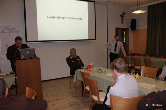 Nach den gewohnten Berichten der Kommandomitglieder (Schriftführer, Kassier, Jugendbetreuer, Ausbildungsbeauftragten, Atemschutzbeauftragten) folgten auch noch der Jahresrückblick des Kommandanten, sowie Ansprachen vom Bezirkskommandanten und vom Bürgermeister Klinger.