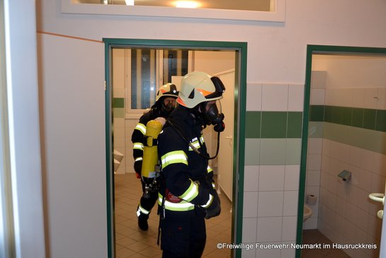 In der Schulküche musste ein Küchenbrand mithilfe eines C-Strahlrohres abgelöscht und einige Klassenzimmer durchsucht werden. Nachdem die Kinder gefunden und in Sicherheit gebracht wurden fand die Suche des Hausmeisters am Dachboden statt.