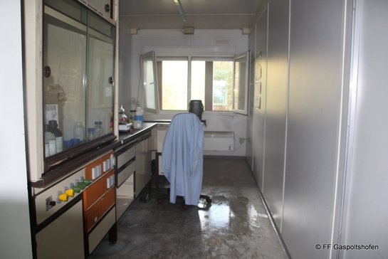 Bei Beladearbeiten wurde durch einen Mitarbeiter ein Container mit Salzsäure beschädigt und Flüssigkeit trat aus. Einsatzleiter: HBI Frischmuth Hans-Jörg von der FF Bad Schallerbach