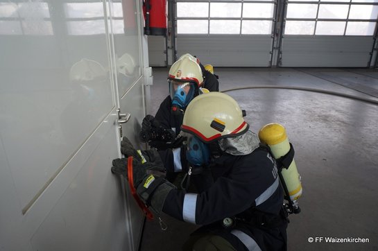 Neben den gängigen Inhalten aus dem Atemschutzlehrgang und der notwendigen Gerätekunde setzt die Ausbildung der FF Waizenkirchen aber auch ganz stark auf das richtige Verhalten im Innenangriff. Themen wie Brandverlauf und seine Beurteilung, Türöffnungsverfahren, Bewältigung von Atemschutznotfällen und taktisches Vorgehen rundeten die Ausbildung ab.