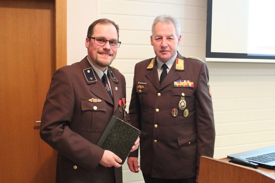 Nach dem Ausscheiden von Brandinspektor Norbert Mader wurde dieser zum Ehren-Brandinspektor ernannt. Dies war der Dank für zehn Jahre Kommandoarbeit bei der Feuerwehr Gaspoltshofen.