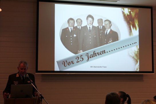Nach der Wahl widmeten wir dem Abend unserem ausgeschiedenen Kommandanten BR Franz Oberndorfer. Die gesamte Mannschaft bedankte sich für seine großartige Arbeit bei der Feuerwehr Gaspoltshofen. Diese führte er seit 1993 somit 25 Jahre und entwickelte das Feuerwehrwesen wesentlich weiter. Auch er bedankte sich bei allen Kameraden für die Unterstützung, aber auch bei seiner Frau Resi, die das große Engagement bei der Feuerwehr immer unterstützte. Mit einem Rückblick auf die vergangenen 25 Jahre als Kommandant machte ihm sein Nachfolger HBI Daniel Watzinger eine sehr große Freude. Zum Glück bleibt er uns ja weiterhin als unser Abschnittskommandant des Abschnittes Haag am Hausruck, aber auch als Feuerwehrmann unserer Wehr erhalten. Auf eine Ehrung seitens der Feuerwehr konnten wir somit nicht zurückgreifen, da diese in höheren Händen beim Bezirk liegt. Diese hohe Auszeichnung wird sicher nach dem Ende als Brandrat folgen.
