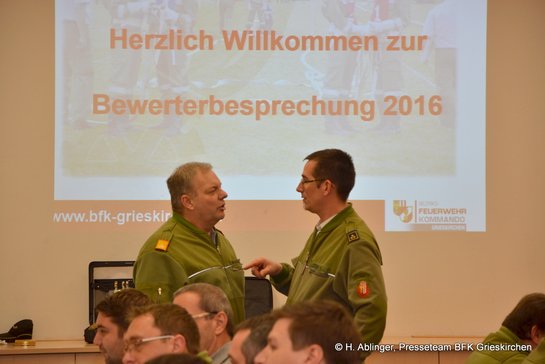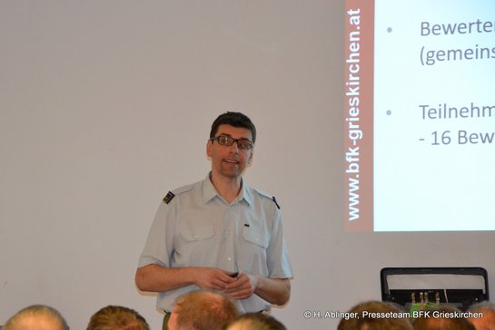 45 Bewerter der Jugend- und Aktivgruppen trafen sich vor Saisonbeginn zu der jährlichen Bewerterbesprechung. Der neue für Bewerbe zuständige Hauptamtswalter Dip.-Ing. Hubert Aigner konnte dabei Bezirks-Feuerwehrkommandant Josef Murauer und Abschnitts-Feuerwehrkommandant Johann Kronsteiner als Ehrengäste begrüßen. Besonders herausfordernd für die Bewerbssaison 2016 wird das neue Liga-System, welches ab diesem Jahr gelten wird und von Hubert Aigner ausführlich erklärt wurde. Neben seiner Premiere als neuer Hauptamtswalter konnte Aigner bei dieser Besprechung auch gleich sieben neue Bewerter vorstellen und in der Bewerter-Runde willkommen heißen, diese sind: Bewerter für Jugendgruppen:
