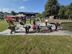 Das Ziel beim Nassbewerb ist, in schnellst möglicher Zeit eine Saugleitung und eine Angriffsleitung aufzubauen, aus einem Wasserteich anzusaugen und im Anschluss die 2 Ziele umzuspritzen.