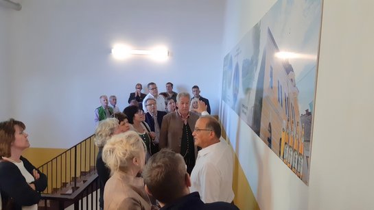 Zu Fuß ging dann die 30-köpfige Reisegruppe in die Eurotherme Bad Schallerbach. Nach einem Rundgang im Hotelbereich wurde vom Geschäftsführer der Thermenholding OÖ, Mag. Patrick Hochhauser und seiner Mitarbeiterin der große Leitbetrieb präsentiert.