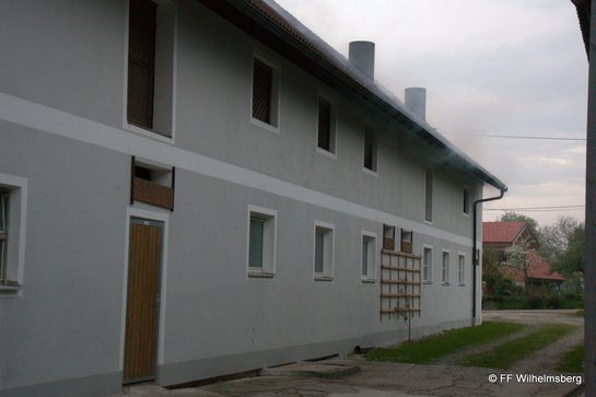 Der östliche Wirtschaftstrakt war im Bereich des Obergeschosses stark verraucht. Vom Besitzer wurde mitgeteilt, dass im ersten Stock eine Holzwerkstatt ist und eine Person vermisst wird. Nach mehrmaligen Nachfragen ob eventuell auch gefährliche Stoffe gelagert werden, fand er heraus, dass in der Werkstatt Dünger gelagert ist. Die FF Wilhelmsberg begann sofort mit dem Aufbau einer Löschleitung vom Löschteich in Wilhelmsberg, der etwa 300 Meter entfernt ist. Kurze Zeit später traf auch die Feuerwehr Roitham ein, die die Löschleitung fertigstellte und mit dem Schützen des Wohnhauses begann. Die Feuerwehr Meggenhofen bekam den Befehl die vermisste Person mit Hilfe der Wärmebildkamera zu suchen und in weiterer Folge zu retten.