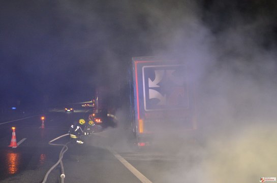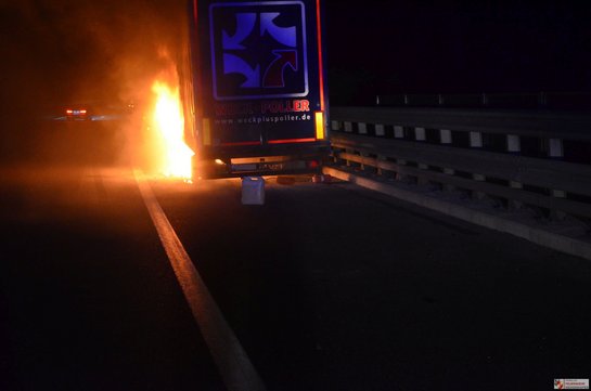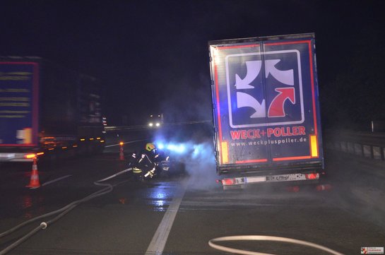 Durch das beherzte Eingreifen des LKW-Lenkers, der bereits mit zwei Feuerlöschern versuchte den Brand zu bekämpfen, konnte ein Vollbrand des Aufliegers verhindert werden.