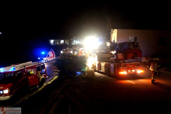 Über eine Schiebeleiter konnte sich der Atemschutztrupp durch Einschlagen eines Fensters einen Zugang in das Objekt schaffen, um zur Brandbekämpfung vordringen zu können. Gleich zwei Atemschutztrupps der Feuerwehren Schlüßlberg und Tegernbach gingen mit jeweils einem C-Hohlstrahlrohr vor. Mit Hilfe der Wärmebildkamera konnten mehrere Glutnester lokalisiert und abgelöscht werden.