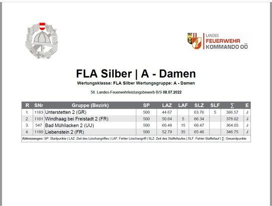 Erneut konnte der Bezirk GRIESKIRCHEN wiederum hervorragende Ergebnisse beim diesjährigen Landesbewerb vom 8.-9. Juli 2022 in St. Peter am Wimberg erziehlen. Folgende Ränge können wir mit Stolz präsentieren: