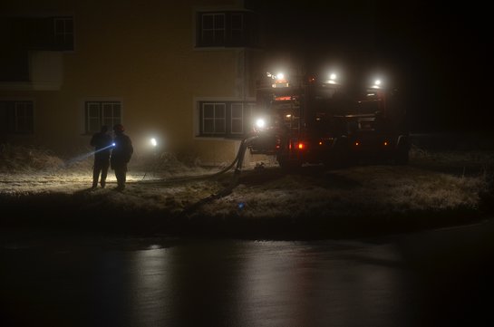 Was war passiert? Die Geothermie betreibt mit Thermalwasser die Fernwärme. Auf Grund eines technischen Defekts, ist die Pumpenanlage ausgefallen. Die Aufgabe der Feuerwehr bestand im Auffüllen des Notwassertanks. Nachdem die Eisdecke am Golfteich aufgebrochen war, wurde die Tragkraftspritze in Stellung gebracht und eine 300 Meter lange Schlauchleitung gelegt. Dann konnte der 40 m³ umfassende Tagestank gefüllt werden, bei Temperaturen um -5° kein angenehmes Untefangen. Der Betreiber startete dann die Entlüftung der Anlage. Dieser Einsatz konnte gegen 02:40 Uhr vorerst beendet werden. Um 05:36 Uhr erging neuerlich der Alarm, wieder waren Pumparbeiten zur Befüllung des Tagestanks erforderlich. Der Betreiber arbeitet intensiv an der Behebung des Schadens, die Feuerwehr unterstützt im Rahmen der Möglichkeiten. Bericht und Fotos: HBM Alfred Voithofer, FF Haag/Hrk.