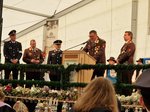 Nach der Messe marschierten alle Formationen ins Festzelt ein, wo eine kulinarische Stärkung auf die Teilnehmer wartete. Um 14:00 Uhr wurde das gesamte Festzelt gebeten, Aufstellung zum Nachmittagsfestzug zu nehmen. Gemeinsam mit den anderen anwesenden Vereinen und ihren Fahnen wurde ein Umzug durch das Dorf abgehalten – trotz des Wetters ein würdiger und stimmungsvoller Abschluss dieses besonderen Jubiläumstags.