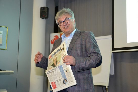 Während der Besichtigung konnte die Gruppe den Druck der Wirtschaftskammer-Zeitung erleben und wie die OÖN-Samstagsausgabe sortiert, mit Werbung "beschossen" und logistisch verarbeitet wird. Täglich werden acht große Papierrollen (à 22.000 Kilometer lang) verarbeitet. Vollautomatisch werden die verschiedensten Zeitungen auf einer 4-farben Druckmaschine im Dreischichtbetrieb gedruckt. Das Recyclingpapier stammt zu überwiegenden Teil aus der Papierfabrik Steyrermühl. So würde zum Beispiel der Papierverbrauch einer einzigen OÖN-Samstagsausgabe eine Strecke von Wien bis Hamburg ergeben (Breite 1,40 m). Mit der fachlichen Nachbesprechung in Wallern wurde die abendliche Exkursion begeistert beendet.