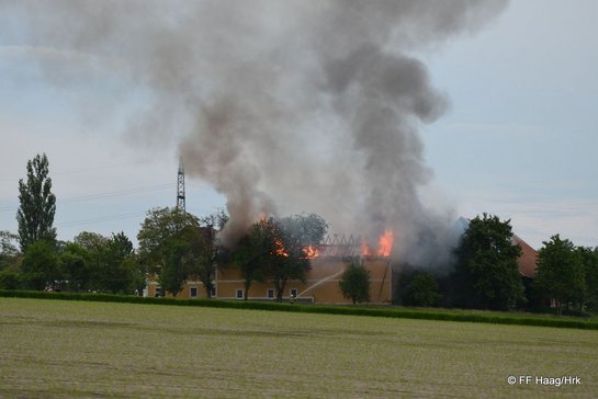 Aus noch unbekannter Ursache geriet gegen 18:28 Uhr der Stalltrakt eines leer stehenden Bauernhauses in der Ortschaft Großpoxruck, Gemeinde Pram in Brand. Bereits bei der Anfahrt konnte eine massive Rauchsäule wahrgenommen werden. Nach Eintreffen der Feuerwehren wurde mit mehreren C-Rohren die Brandbekämpfung aufgenommen, die Wasserversorgung wurde von Hydranten und Löschwasserbehältern sichergestellt. Eine Brandausbreitung auf das Wohn- und Wirtschaftsgebäude konnte erfolgreich verhindert werden. Verletzt wurde niemand, die Schadenshöhe ist unbekannt, die Brandursachenermittlung wurde von den Sachverständigen aufgenommen, die Sanitätsstelle wurde vom Roten Kreuz Haag betreut.
