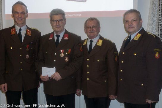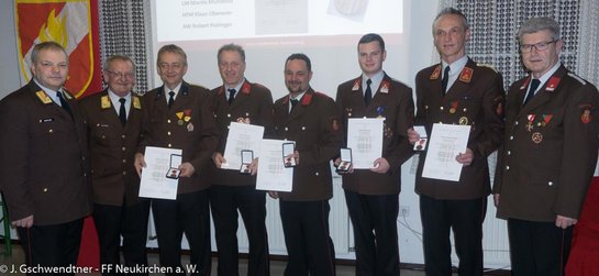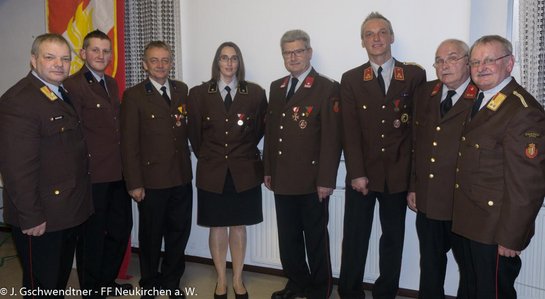 Weiters wurden drei neue Jungfeuerwehrmitglieder aufgenommen und zwei neue Mitglieder traten der Feuerwehr bei. Die Feuerwehr Neukirchen am Walde wurde im Jahr 2015 zu fünf Brandeinsätzen und zu 115 Technischen Einsätzen gerufen, davon waren 75 Wassertransporte. Insgesamt wurden 6.450 Stunden geleistet.