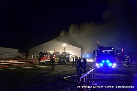 Bei der Erkundung stellte der Einsatzleiter der Feuerwehr Kallham HBI Pauzenberger Daniel fest, dass der hintere Teil der Halle in Vollbrand stand und löste daher umgehend Alarmstufe 3 aus. Es waren somit 14 Feuerwehren mit über 20 Fahrzeugen und fast 200 Einsatzkräften vor Ort.