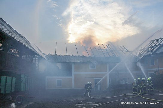 Zu einem Brand eines Vierkanthofes kam es am 28. Mai 2018 gegen 19:10 Uhr in Wallern an der Trattnach. Die 62-jährige Bewohnerin bemerkte den Brand, woraufhin die 42-jährige Eigentümerin, die mit ihrer Familie im angrenzenden Wohnhaus wohnt, die Feuerwehr verständigte. Die polizeilichen Erhebungen ergaben, dass Kinder im westlichen Bereich des Wirtschaftstraktes Popcorn zubereiten wollten und dadurch der Brand entstanden ist. An den Löscharbeiten waren 14 Feuerwehren beteiligt. Menschen und Tiere kamen nicht zu Schaden. Der Schaden ist derzeit noch nicht bezifferbar.