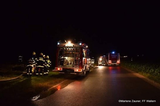 Die örtliche Feuerwehr Buchkirchen war parallel noch mit einem Verkehrsunfall mit eingeklemmter Person beschäftigt, sodass die FF Wallern kurzzeitig als erste Feuerwehr die Einsatzleitung übernahm.