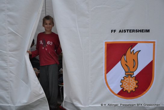 So haben am Mittwochnachmittag, 13. Juli noch bei halbewegs trockenem Wetter 1.153 LagerteilnehmerInnen ihre 142 Zelte aufgebaut. Unser Bezirk Grieskirchen ist mit 424 Teilnehmern (Jungfeuerwehrmitglieder +BetreuerInnen) und 52 Zelten aus 37 verschiedenen Feuerwehren beim 1. Turnus wiederum starkt vertreten.