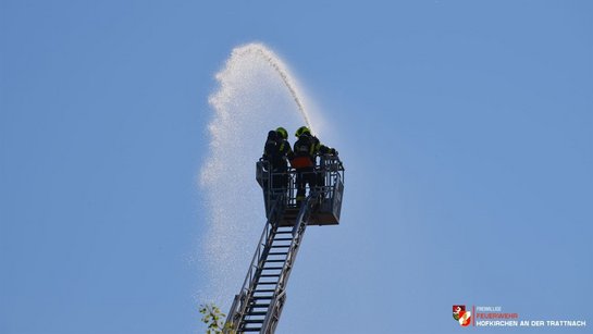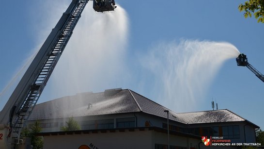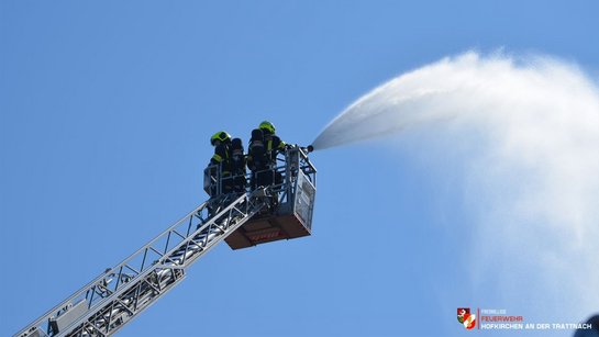 Zu Spitzenzeiten wurde der Brand von mehreren Seiten, inklusive über zwei Drehleitern, bekämpft – die Wasserversorgung wurde mittels Unter- und Überflurhydranten sowie einer längeren Leitung von der Trattnach aus sichergestellt.