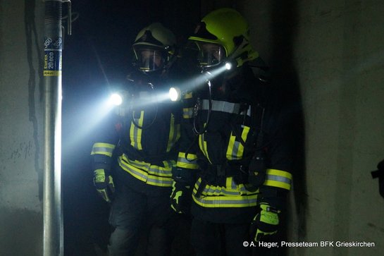 Zwei gefundene Personen wurden von den Höhenrettern und der Drehleiter Grieskirchen aus dem Gebäude gerettet. Als Übungsbeobachter standen BR Oberndorfer Franz, HBI Nöhammer Stefan und OAW Mairhofer Jakob zur Verfügung. Die Atemschutzflaschen wurden im Anschluss durch die FF Grieskirchen mittels ASF wieder befüllt. Bei einer gemeinsamen Schlußbesprechung im Feuewehrhaus Rottenbach wurde der Übungsablauf nachbesprochen.
