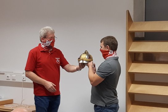 Als sichtbares Zeichen des Führungswechsels überreichte E-HBI Kronlachner dem neuen Kommandanten einen historischen Feuerwehrhelm (für die Funktion) und das Füllhorn (für die Kameradschaft) - zwei Gegenstände, dem auch den heutigen Alt-Kommandant damals überreicht wurden.