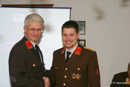 Anschließend wurden LM Stefan Brunner und FM Manfred Stieger im Zuge der Ernennung jeweils zum Hauptbrandmeister befördert.