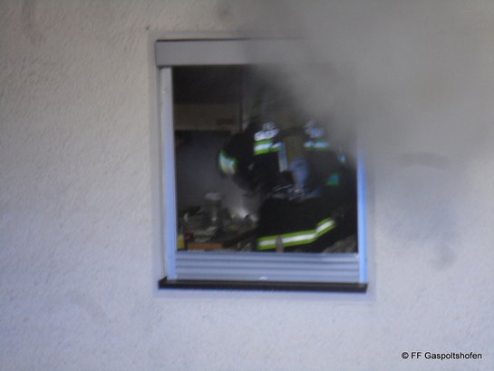 Gleich nach dem Eintreffen konnte Einsatzleiter BI Florian Oberndorfer feststellen, dass es sich um einen Küchenbrand im Erdgeschoss eines Wohnhauses handelte. Glücklicherweise waren keine Personen mehr im Haus. Unverzüglich machte sich der erste Atemschutztrupp der FF Gaspoltshofen zur Innenerkundung bereit und drang in die Küche vor. Dabei wurde mittels Hochdruckleitung der Brand bekämpft und eine Abluftöffnung zur Belüftung geschaffen. Zur Erkundung und Sicherstellung, dass sich im Haus keine Personen mehr befanden wurde noch ein Atemschutztrupp der Feuerwehr Altenhof in den ersten Stock geschickt. Zur Sicherstellung des Löschwassers wurde von den Kameraden des Pumpenfahrzeuges der FF Gaspoltshofen eine Zubringerleitung vom nächstgelegenen Hydranten aufgebaut, die jedoch später nicht mehr benötigt wurde. Bereits nach kurzer Zeit konnte Brand aus gegeben werden. Aufgrund der starken Rauchentwicklung in der Wohnung wurde diese leider unbewohnbar. Mit Hilfe unserer Wärmebildkamera wurde der betroffene Bereich in der Küche kontrolliert. Das ebenfalls alarmierte Rote Kreuz kümmerte sich um die Bewohner des Hauses. Weiters vor Ort war auch die Polizei, die die ersten Schritte zur Brandursachenermittlung einleitete.