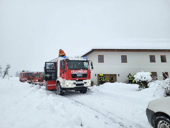 In Folge der starken Schneefälle in der Nacht auf Samstag wurde die FF Tegernbach am 2. Dezember 2023 um 05:24 Uhr alarmiert.