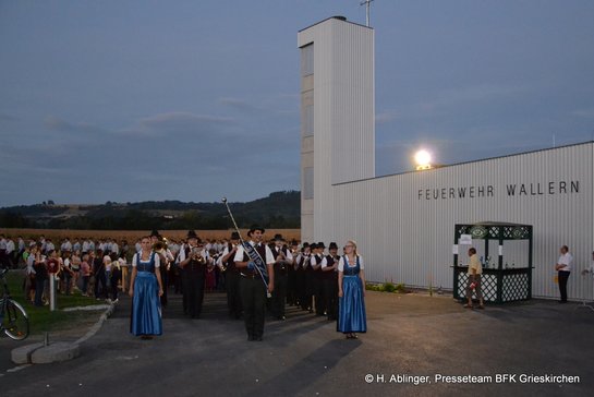 Musikalisch umrahmt wurde der Festakt von der Marktmusikkapelle Wallern. Den Segen für das neue Zuhause und dem neuen Einsatzfahrzeug erteilten der katholische Pfarrer Gerhard Schwarz und der evangelische Pfarrer Andreas Hochmeir im gemeinsamen Gebet. Nach der Defilierung vor dem alten Feuerwehrhaus wurde der Abend noch gebührend im Festzelt mit den Wallerer Kameraden gefeiert.