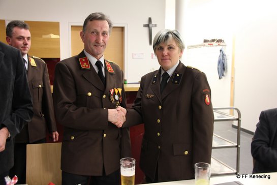 Langjähriger Kommandant Alois Mittermair übergibt die Führung der FF Keneding an Sabine Humer.