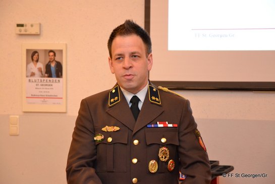 Die stolze Summe von 8.670 Stunden erbrachten die Kameraden der FF St. Georgen für das vergangene Jahr 2017 an Ehrenamt. 13 Übungen, zahlreiche Veranstaltungen, Sitzungen sowie einen Brand und 15 technische Einsätze wurden von den Jörger Feuerwehrkräften im letzten Jahr an Leistungen erbracht. Diese Bilanz konnte von Schrift- und Kassenführer, Jugendbetreuerin und dem Kommandanten vorgetragen werden. 54 Kameradinnen und Kameraden (inkl. 17 Jungfeuerwehrmitglieder) lauschten den interessanten Ausführungen der Jubiläums-Vollversammlung. Neben den Einsatzkräften begrüßte Kommandant Fuchshuber einige Ehrengäste. Darunter Bürgermeister Karl Furthmair, Amtsleiter Johann Wimmer, Abschnitts-Feuerwehrkommandant Johann Kronsteiner, Pflichtbereichs-Kommandant Thomas Wieser, Ehren-Oberbrandrat Josef Schwarzmannseder, Maria Fuchshuber, Helga Aigner und drei Ehrendienstgradträger der FF St. Georgen Josef Dallinger, Walter Waltenberger und Klaus Wassermair. Ein besonders schönes Geschenk hatte die 17-köpfige Jugendgruppe mit Jugendbetreuerin Elisabeth Huemer vorbereitet. Die Kids bedankten sich bei Kommandant Fuchsuber und seine Frau Maria mit einem Gruppenbild, Bier und Blumen. Nach dem Referat des Abschnittskommandanten Kronsteiner konnte sich Bürgermeister Furthmair nicht nur für die geleistete Arbeite bedanken, sondern im Auftrag der Gemeinde einen neuen mit Werkzeug befüllten Werkstattwagen an die Feuerwehr übergeben. Somit verfügen die Kameraden über ordentliches Werkzeug und können kleinere Reparaturen oder Umbauten selber durchführen. Eine Beförderung und fünf Ehrungen an verdiente Kameraden Befördert wurde Christian Lemberger zum Hauptlöschmeister. Die Bezirks-Verdienstmedaille in Bronze (Stufe III) erhielten: LM Bernhard Illk und F-Kurat Pater Herbert Sojka. Die Bezirks-Verdienstmedaille in Silber (Stufe II) erhielten: OBI Franz Wiesner, AW Helmut Wiesner und BI Gerhard Aigner. Neues Führungsteam mit 100% gewählt Im Anschluss an die Versammlung führte Bürgermeister Furthmair die Neuwahl des Kommandos durch. Kommandant Norbert Fuchshuber legte nach 15-jähriger Tätigkeit als Kommandant seine Funktion zurück. Auch sein Stellvertreter, Franz Wiesner beendete die Funktion nach zehn Jahren und 15 Jahren im Kommando. Der Lotsen- und Nachrichtenkommandant Gerhard Aigner legte auch seine Funktion zurück und beendete diese nach 15 Jahren. Mit 100% wurden alle vier Kommandomitglieder von 37 Wahlberechtigten in ihre Funktionen gewählt: Kommandant: Herbert Ablinger (neu)