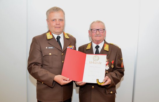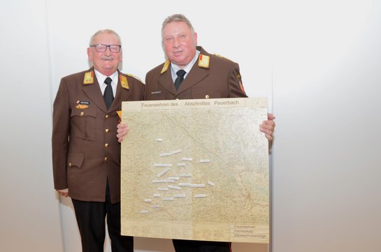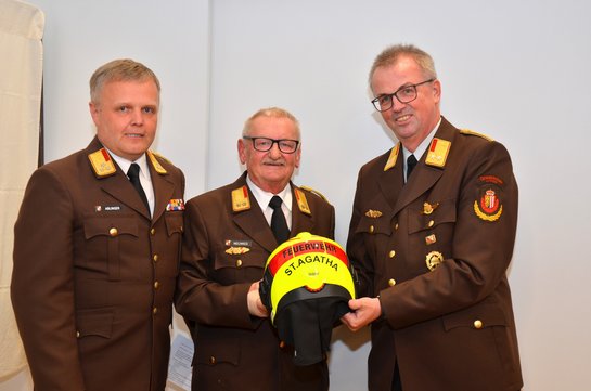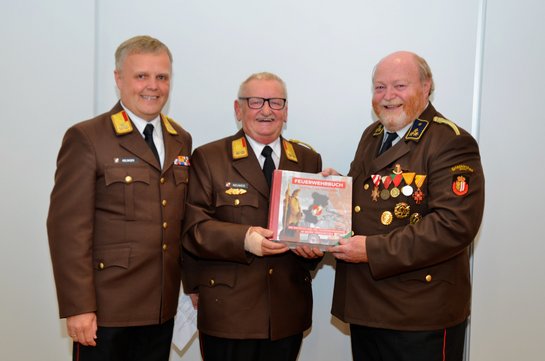 Bei BR Neuweg hieß es Abschied zu nehmen, seine ergreifende Rede war gefüllt mit Emotionen, Erlebnissen, Höhen und Tiefen aus den letzten 18 Jahren. Als Dank für die geleistete Arbeit durfte Bezirks-Feuerwehrkommandant OBR Herbert Ablinger in Vertretung des Landes-Feuerwehrkommandanten den "Ehren-Brandrat" überreichen. Natürlich gab es auch ein paar persönliche Geschenke für den scheidenden Funktionär. Viel Gesundheit und weiterhin schöne Begegnungen wünschen wir "unserem Heli".