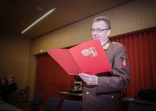 Mit dem Verdienstzeichen des Österreichisches Bundesfeuerwehrverbandes in 3. Stufe wurde Kommandant Wolfgang Kaliauer von Brandrat Johann Kronsteiner ausgezeichnet.