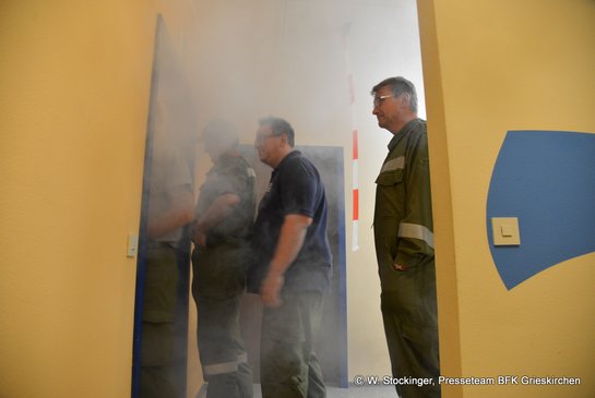 Lehrgangsleiter und Abschnitts-Feuerwehrkommandant BR Franz Oberndorfer konnte 41 Teilnehmer aus 11 Feuerwehren des Bezirkes Grieskirchen, den Bezirks-Feuerwehrkommandant OBR Josef Murauer und den Ausbilderstab des Abschnittes Haag zum neu eingeführten Lehrgang in Weibern begrüßen. Zu Beginn der Ausbildung wurden die verschiedenen Hochleistungslüfter-Typen, das Be- und Entlüftungsgerät und auch der mobile Rauchabschluss in einem theoretischen Teil anschaulich erklärt und in einer interaktiven Präsentation die verschiedenen Einsatzmöglichkeiten durchgespielt. Nachmittags wurde das Erlernte in der Straßenmeisterei Weibern im Stationsbetrieb gleich in die Praxis umgesetzt. Eine Wohnung samt Stiegenhaus musste unter Einhaltung der vermittelten taktischen Regeln rauchfrei gemacht werden. Die verschiedenen Strömungsverhalten der unterschiedlichen Lüftertypen wurden mit Hilfe eines Nebelgerätes verständlich demonstriert. Mit dem neuen Lehrgang wurde den 41 Einsatzkräften anschaulich und praxisnah der richtige Umgang mit den Hochleistungslüftern näher gebracht.