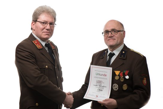 Schriftführer August Nimmerfall beendet seine Kommandotätigkeit nach über 20 Jahren und wurde dafür mit der Bezirksverdienstmedaille 1. Stufe und dem Dienstgrad Ehren-Amtswalter ausgezeichnet. Wir bedanken uns recht Herzlich für seine Jahrzehnte lange ehrenamtliche Tätigkeit. Ihm folgt unser bisheriger Lotsen- und Nachrichtenkommandant Alexander Mallinger als Schriftführer.