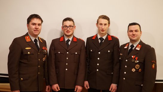 Gabriel Mair zum Feuerwehrmann befördert. Josef Auinger, Josef Gfellner und Harald Pauzenberger bekamen die Dienstmedaille für 25 Jahre im Dienste der Feuerwehr. Robert Doppelbauer, Andreas Mair und Robert Wimmer bekamen das Feuerwehrverdienstabzeichen des Bezirkes in Bronze (Stufe 3),