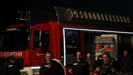 Um 17:30 Uhr traf dann das neue TLFA 2000 in Tegernbach ein und wurde von den eigenen Kameraden, Bezirksfeuerwehrkommandant OBR Herbert Ablinger, Abschnittsfeuerwehrkommandant BR Johann Kronsteiner, sowie der interessierten Bevölkerung empfangen. Weiters konnte Kommandant ABI Andreas Auinger noch einige Gäste, wie Gemeindevorstand Rupert Dopler, Ehren-Bezirksfeuerwehrkommandant E-OBR Josef Schwarzmannseder und vom Landesfeuerwehrkommando ABI d.F. Robert Sumedinger (Kommandant der FF Tegernbach von 1985-1996) zu diesem freudigen Ereignis herzlich begrüßen.