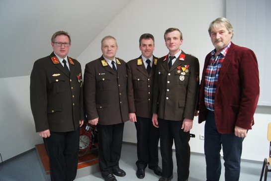 Mit der 25-jährigen Verdienstmedaille wurde Oberlöschmeister Manfred Kaser ausgezeichnet. Funkbeauftragte Christina Mairhofer wurde zum Oberlöschmeister befördert. Weiteres wurde noch Lukas Stöger angelobt.
