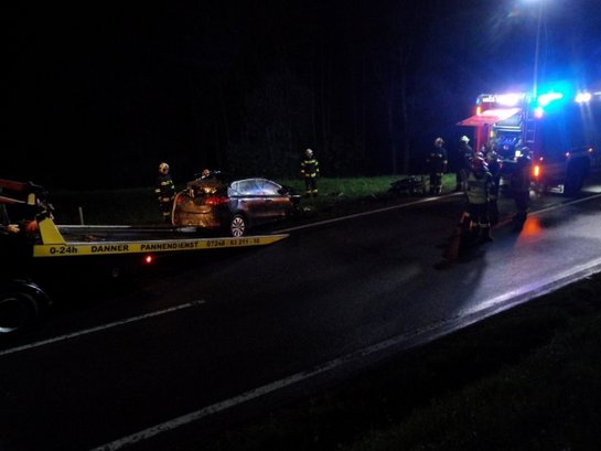 Die Unfalllenkerin war so schwer eingeklemmt, dass auch das Rettungsgerät der Feuerwehr Altenhof eingesetzt werden musste. In guter Zusammenarbeit mit dem Notarzt und dem Roten Kreuz konnte bei gleichzeitigem Einsatz von zwei Rettungszylindern, dem Spreizer und der Schere die verletze Person nach über einer Stunde starker Arbeit gerettet werden. Nach der Versorgung durch das Team der Rettung wurde die Fahrzeuglenkerin in das Klinikum Wels eingeliefert. Nach Absprache mit der Polizei und nach dem Eintreffen des Abschleppdienstes Danner konnte das Fahrzeug mittels Einbauseilwinde zur Straße gezogen werden. Nach mehr als zwei Stunden rückten alle Kameraden wieder in ihre Feuerwehrhäuser ein.