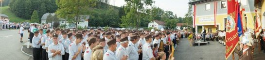 HBI Gerhard Moser konnte konnte zahlreiche Ehrengäste, 41 Feuerwehren mit über 600 Kameraden und Kameradinnen samt Tafelkinder, den Musikverein Neukirchen und viele Zuschauer aus der Bevölkerung zum Festakt in Eschenau begrüßen.
