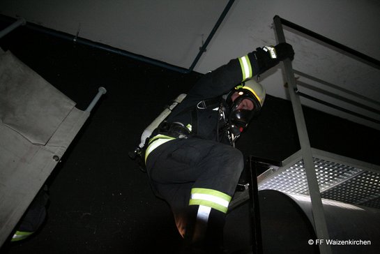Unter der Anleitung von Günter Ortner und Siegfried Stögermair von der FF Wels waren insgesamt sieben Atemschutztrupps aus Waizenkirchen im Einsatz. Die Übung gliederte sich für jeden Truppe in drei Teile: