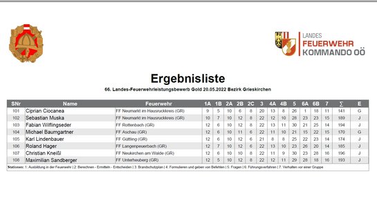 Ein Dank gilt dem Bezirks-Ausbilderteam unter der Führung von HAW Walter Haslehner (FF Waizenkirchen) und OBI Roland Moser (FF Unterstetten) für die intensive Vorbereitungszeit mit den neuen Maturanten. Danke auch an Carina Mayr, Manuel Baldinger und Roland Moser für die Bewertertätigkeit am FLA-Gold.
