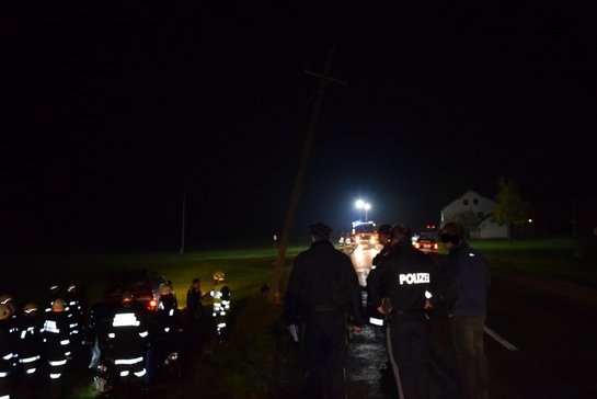 Ein Pkw kam aus noch ungeklärter Ursache nach einer Linkskurve von der Fahrbahn ab und prallte frontal gegen einen Strommasten. Beim Eintreffen am Unfallort konnte bereits Entwarnung gegeben werden, da sich die verunfallte Person bereits selbst aus dem Fahrzeug befreien konnte. Die verletzte Person wurde vom Roten Kreuz Peuerbach versorgt und in ein Krankenhaus eingeliefert. Aufgrund des heftigen Aufpralls, knickte der Mast ein und hing gefährlich über die Fahrbahn. Der ebenfalls alarmierte Energieversorger lies umgehend die Stromversorgung unterbrechen und sicherte den Masten um ein weiteres einstürzen auf die Fahrbahn zu verhindern. Während die FF Heiligenberg und die FF Waizenkirchen eine örtliche Umleitung einrichteten, wurde die Schadenslage von der Polizeiinspektion Peuerbach aufgenommen. Im Anschluss konnten die Einsatzkräfte das verunfallte Fahrzeug vom Unfallort entfernen und die Fahrbahn säubern, ehe diese wieder für den Verkehr freigegeben werden konnte. Im Einsatz standen: