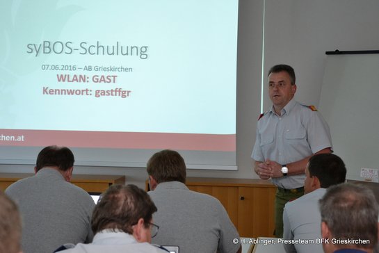 Abschnitts-Feuerwehrkommandant Johann Kronsteiner lud am Dienstag, 7. Juni 2016 ins Feuerwehrhaus Grieskirchen zu einer Sybos-Schulung ein.