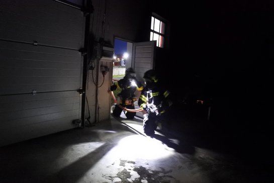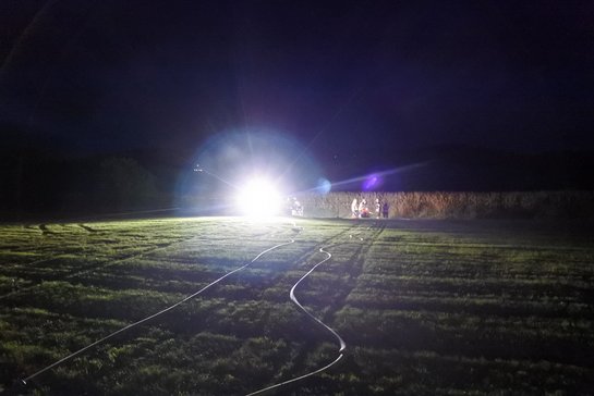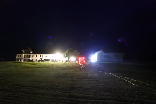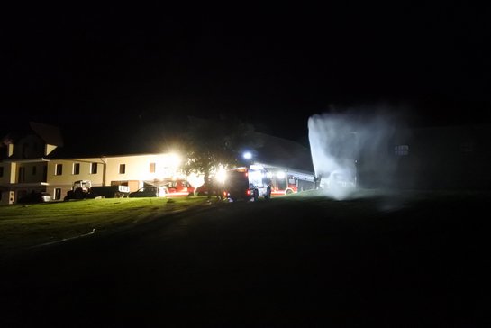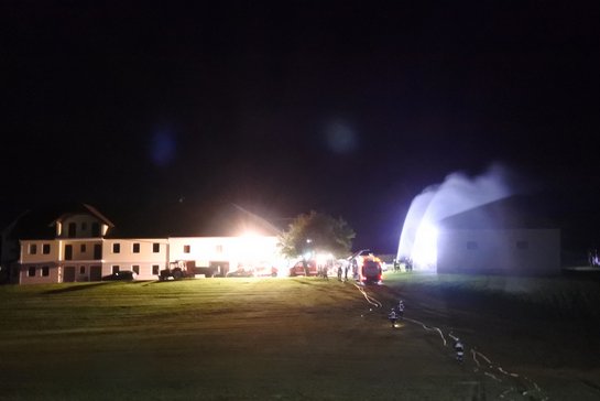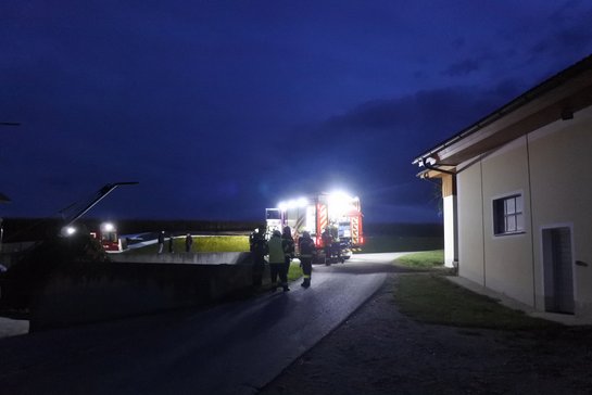 Als zusätzliche Schwierigkeit wurde den Feuerwehren, mitgeteilt das die Bäuerin beim Versuch die Maschinenhalle zu Löschen nicht mehr aus der selbigen herausgekommen ist.