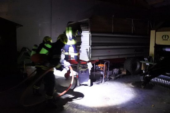 Nach der Rettung der Bäuerin konnten die anwesenden Feuerwehren den Brand durch einen gezielten Löschangriff von innen und außen an der Maschinenhalle rasch löschen bzw. unter Kontrolle bringen.