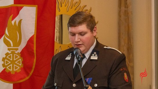 Durch das Programm führte Kommandant HBI Sebastian Dieplinger, musikalisch begleitet von einer Bläsergruppe des örtlichen Musikvereins.