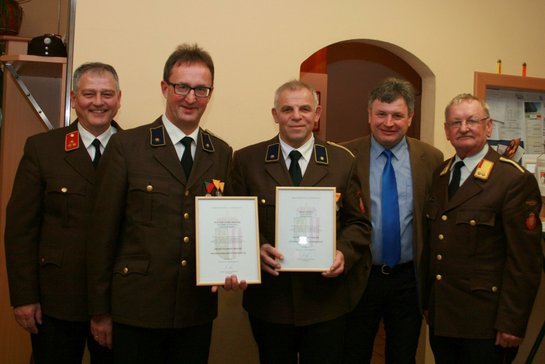 3. Foto - v.l.n.r.: Kdt.Rudolf Auer, Walter Scheuringer, Josef Jobst, Bgm.Herbert Lehner, AFK Helmut Neuweg.